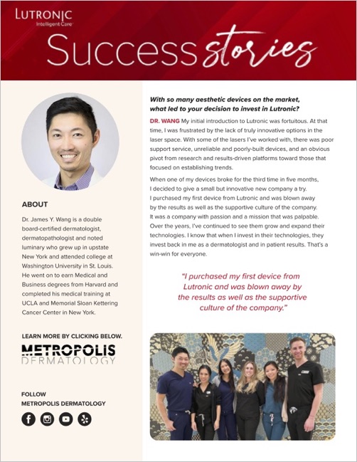With so many aesthetic devices on the market, what led to Dr. Wang’s decision to invest in Lutronic?